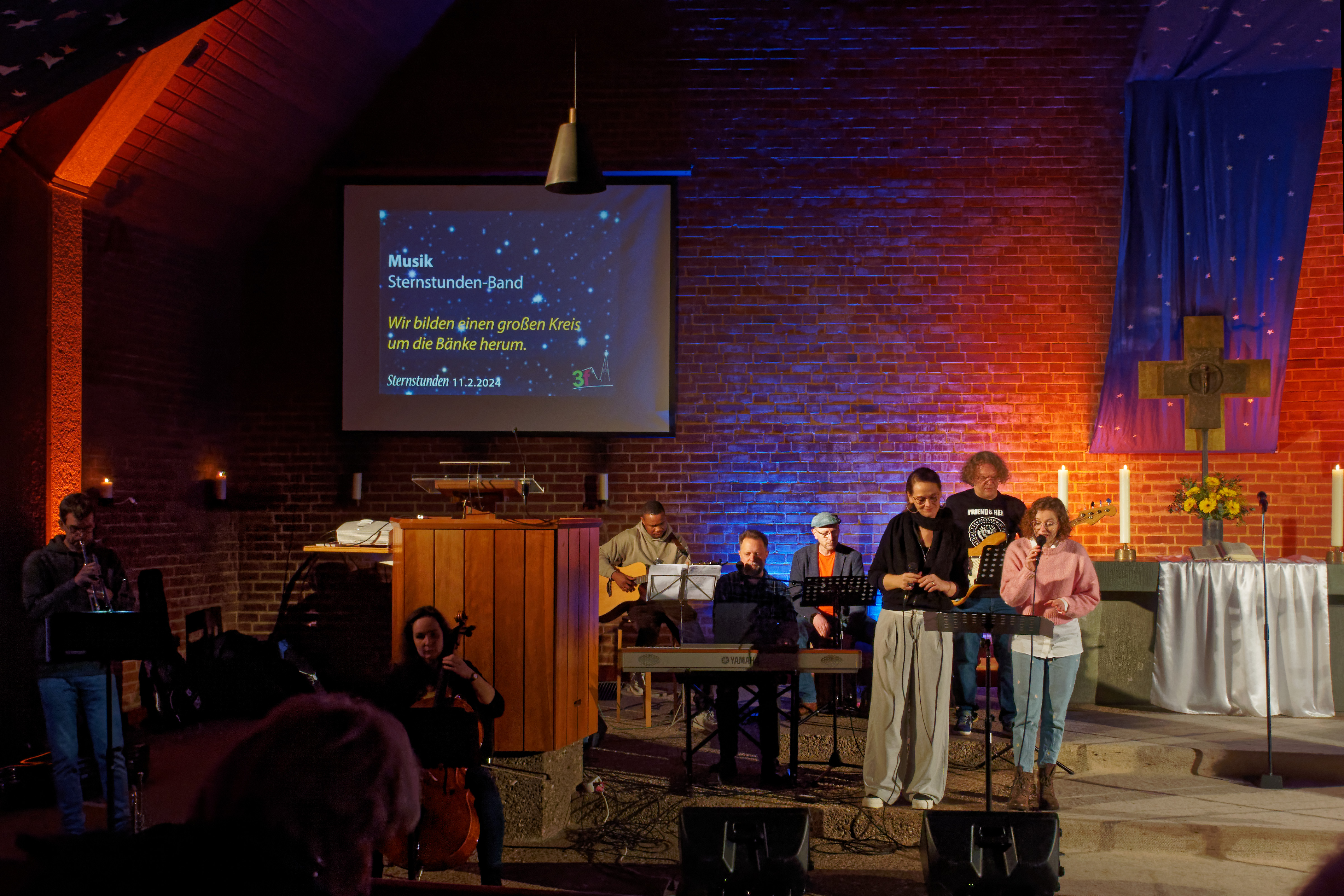 Seit Herbst 2011 feiern wir in unserer Kirche Sternstundengottesdienste. Sie ergänzen die sonntäglichen Morgengottesdienste und sind stets etwas besonders: darum haben wir sie auch Sternstunden genannt. Außerdem finden sie nur in der dunklen Jahreszeit statt, also zwischen Oktober und März.Besondere Gäste haben die Sternstunden immer wieder bereichert: vom Kunstbeauftragten bis zum online-Seelsorger, vom Atheisten bis zum Militärpfarrer, vom Vertreter der Moscheegemeinde bis zur Ernährungsberaterin, Politiker, Journalisten: die Liste der Interviewgäste ist vielfältig! In der Mitte dieses besonderen Gottesdienstes besteht in einer offenen Phase die Möglichkeit zur Segnung, zur Formulierung von Gebetsbitten, zum Themengespräch und anderen auch kreativen Angeboten. Besondere Musik und eine liebevoll geschmückte Kirche machen die Sternstunde zu einem besonderen Erlebnis.